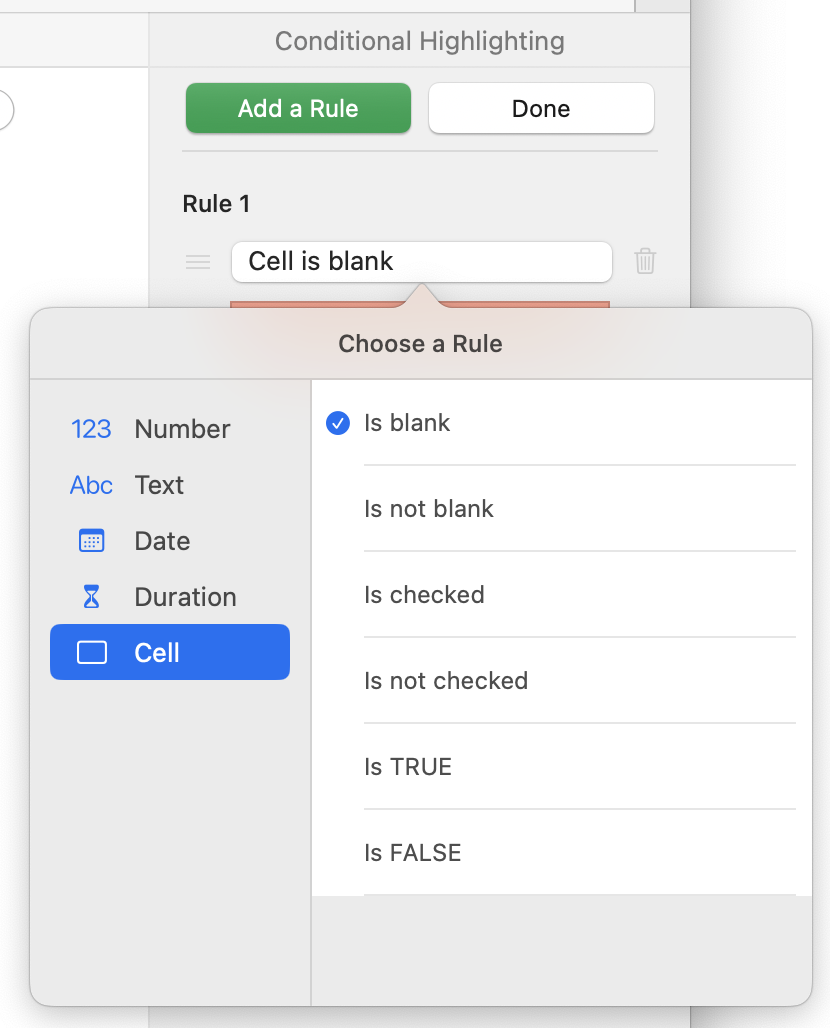 How do i conditional format a cell to make it black when no infomation is shown in the cell - Numbers