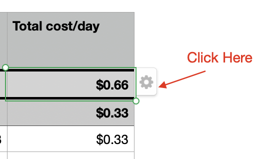 What I want to do (if possible) is to have a sum of all "TOTAL cost / day" amounts.
