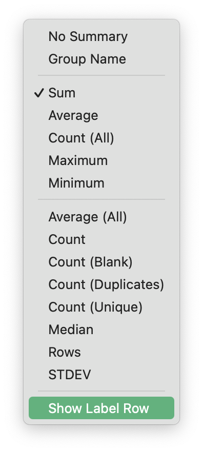 I have a sheet with categories (each Summary row is a type of dietary supplement (e.g., "B complex")), and a column with a (currency-formatted) cel that displays a "Summary" of "Sum", which is the sum of the numbers ("TOTAL cost / day") in the (numbered/actual) rows (in one of my screenshots, that cel has a green background). This works fine: