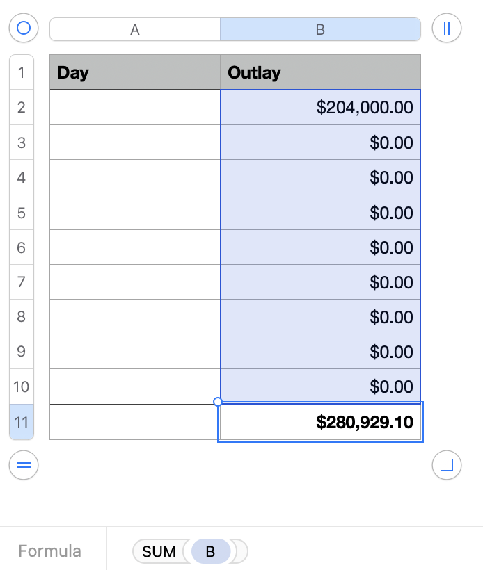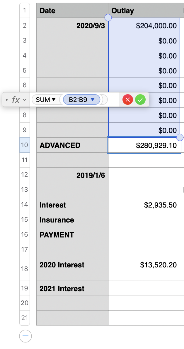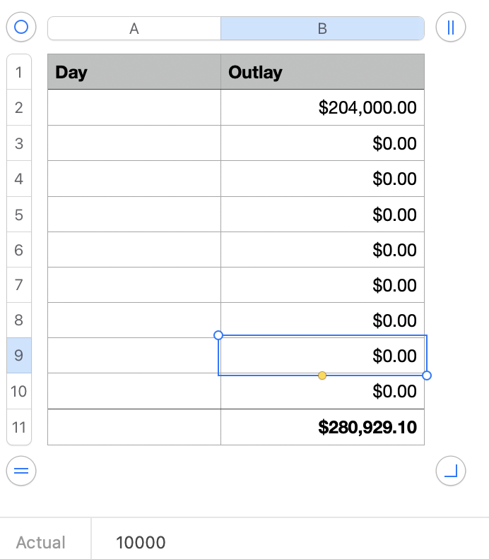 In this way I can set values in cells B3:B9 that are less than $10,000 and they don't show. However, the cell still has that actual, underlying value, and that is what SUM() uses, not the displayed value. This is true of every spreadsheet since, like, forever.