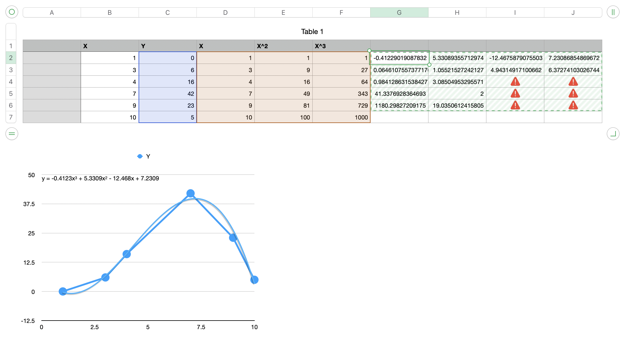 I'd like to increase the number of displayed digits in a nonlinear trendline, e.g. polynomial degree > 1. Can't find a way. Using linest it can be done in a table. Higher order I think I am out of luck.
