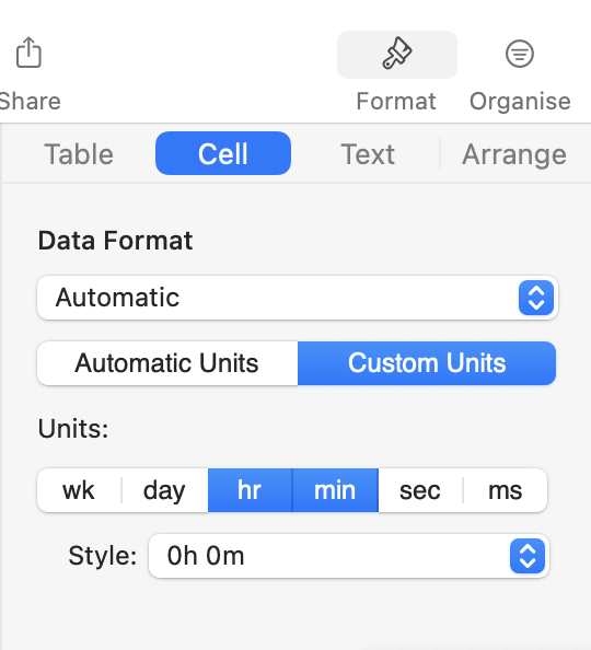 For example, I will have a value of 3:15 that was imported from Quickbooks. Quickbooks knows it to be 3 hours and 15 minutes, but Numbers recognizes in as 3 minutes and 15 seconds. So I go under "Cell>Data Format" and change it from minutes and seconds to hours and minutes. Post-change, I am wanting Numbers to recognize the data as 3 hours and 15 minutes (as intended), but Numbers will instead automatically convert the value to 0 hours and 3 minutes and now the data is inaccurate.