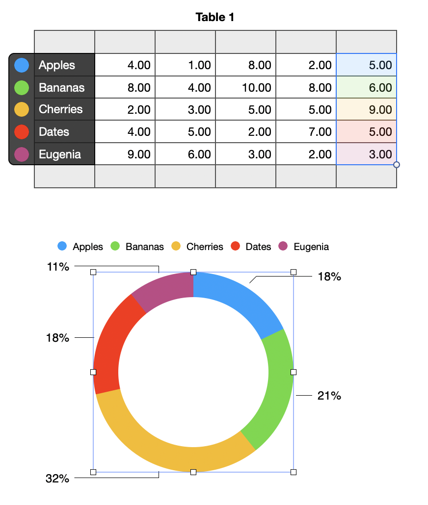 I have a table with 6 columns. I want to show the data using a 2D donut chart. I want to use Column A for the labels and Column F for the data. It appears I cannot do this unless I...