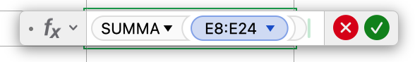 What do you have in cells E8:E24?