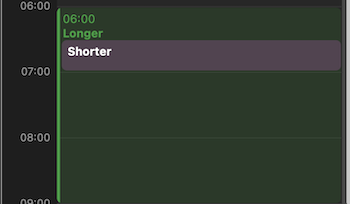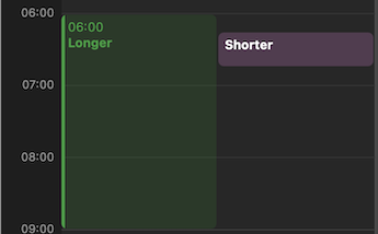 When having a longer event and a shorter event that needs to overlap within the longer, sometimes one may end up with these taking up half the horisontal space, which might both be confusing and impractical as your planning has the structure it has and you want your Calendar to reflect this in a way that is meaningful to you. This display can of course be helpful at it makes easy to see schedule conflicts, but sometimes it's not.