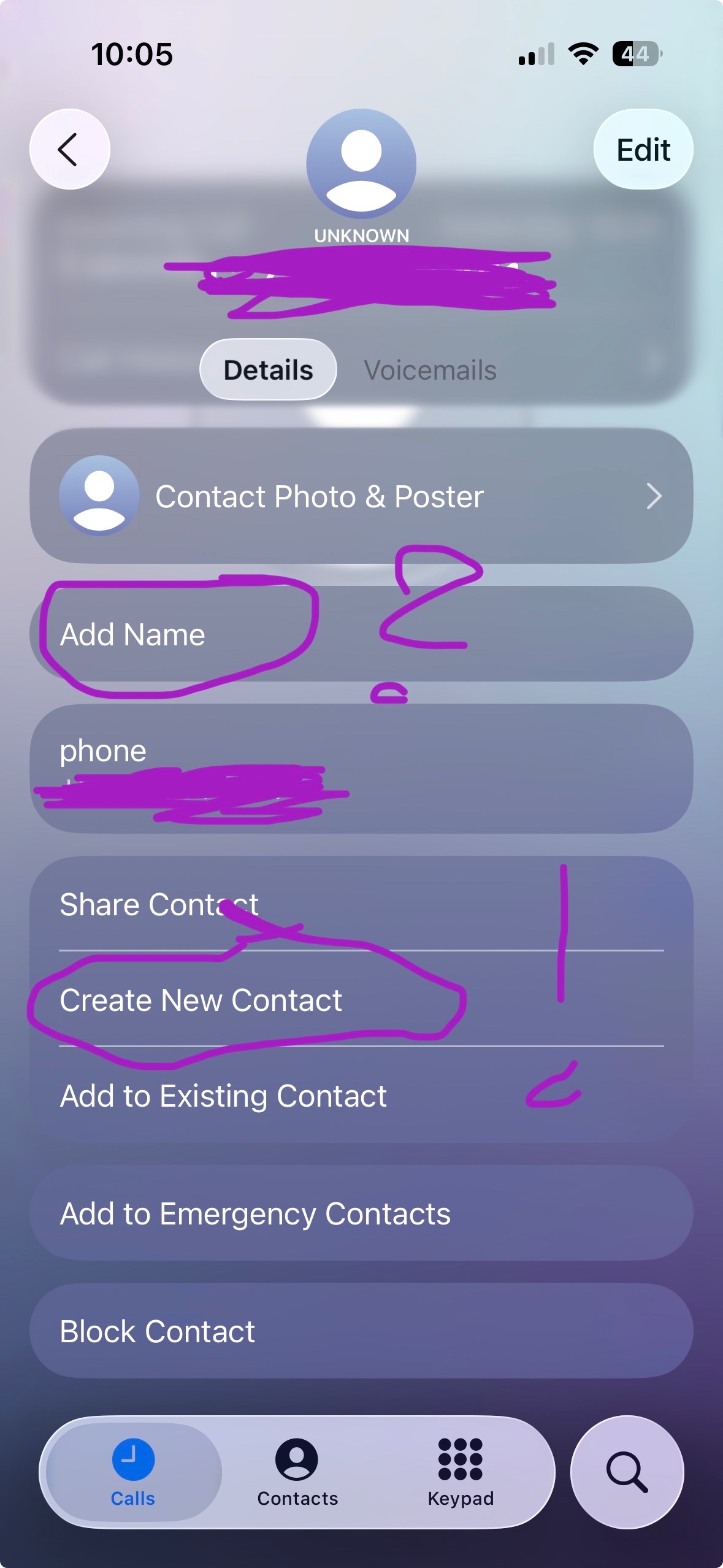 In ios26 recents there is with unknown number choices like "add name" vs "create new contact". What is the difference? In ios18 there was only "create new contact" and no this choices like "add name".
