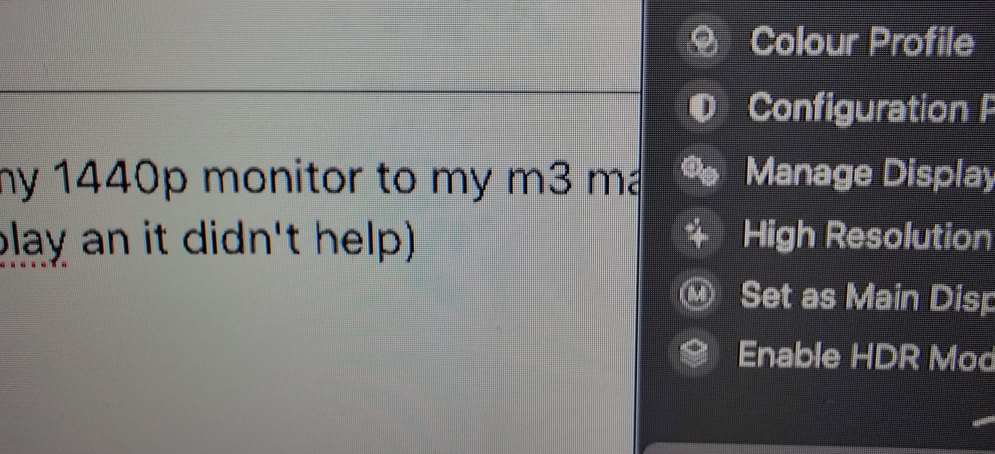 i use a USB type-c dongle that has a display port to connect my 1440p monitor to my m3 mac but text and icons seem very blurry an it seems like circles and rounded edges have vertical line through them (and yes i have downloaded betterdisplay an it didn't help much)
