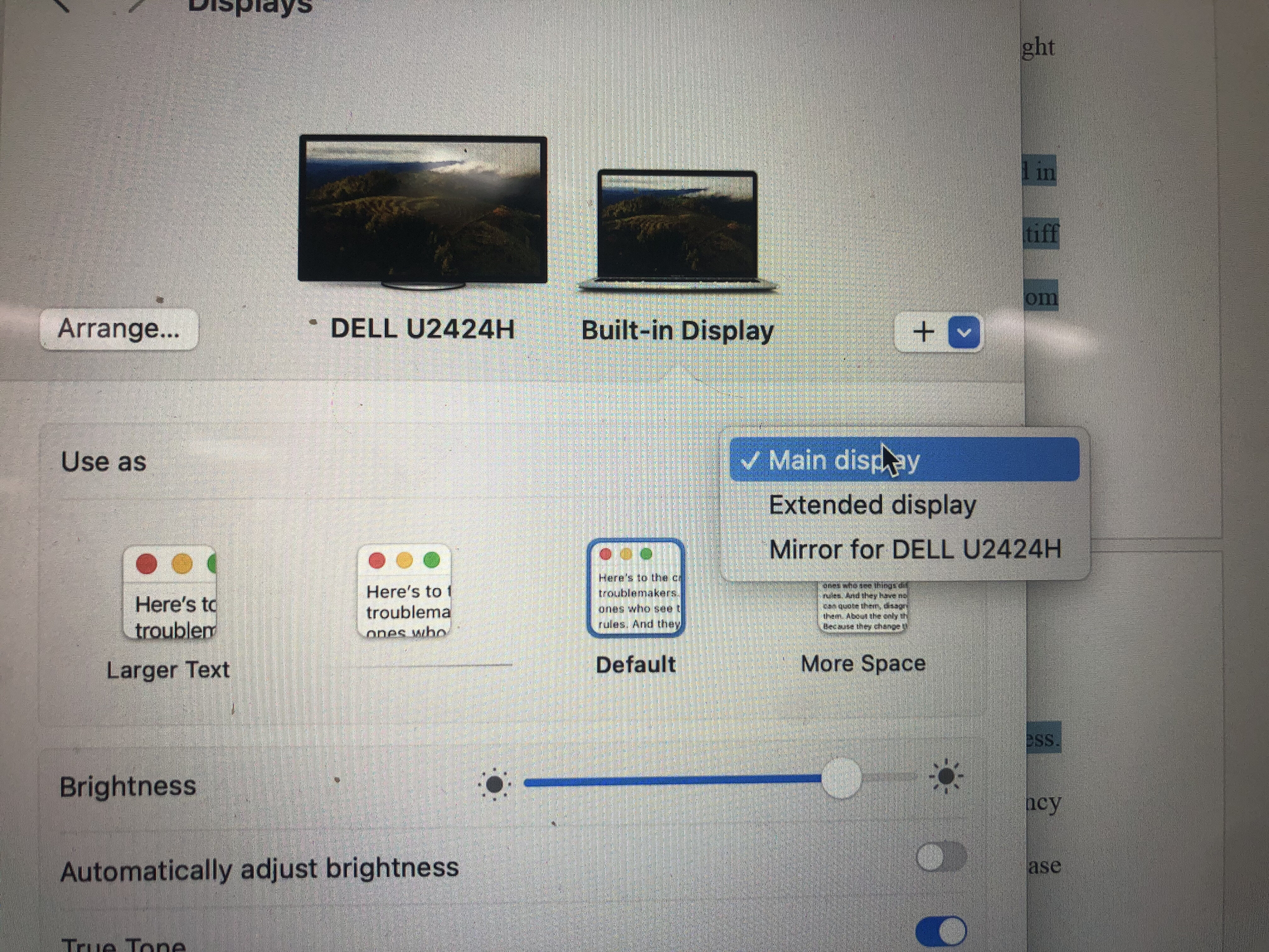 I also can't seem to find the right configuration setting on my settings . As seen beneath, it also only shows 1 DELL monitor.