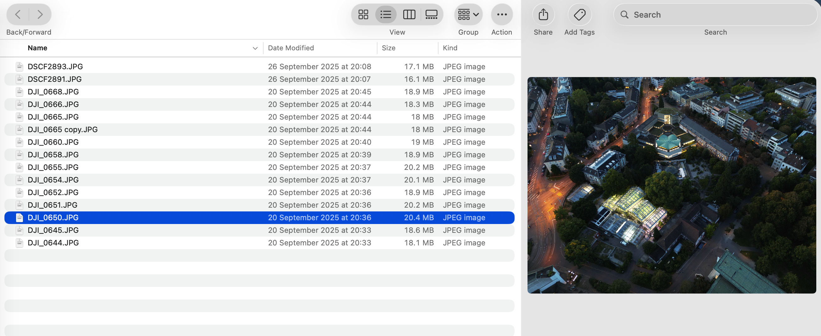 - In the sidebar I see the thumbnails, next to it the bigger version of the photo my cursor is on in the thumbnail column
