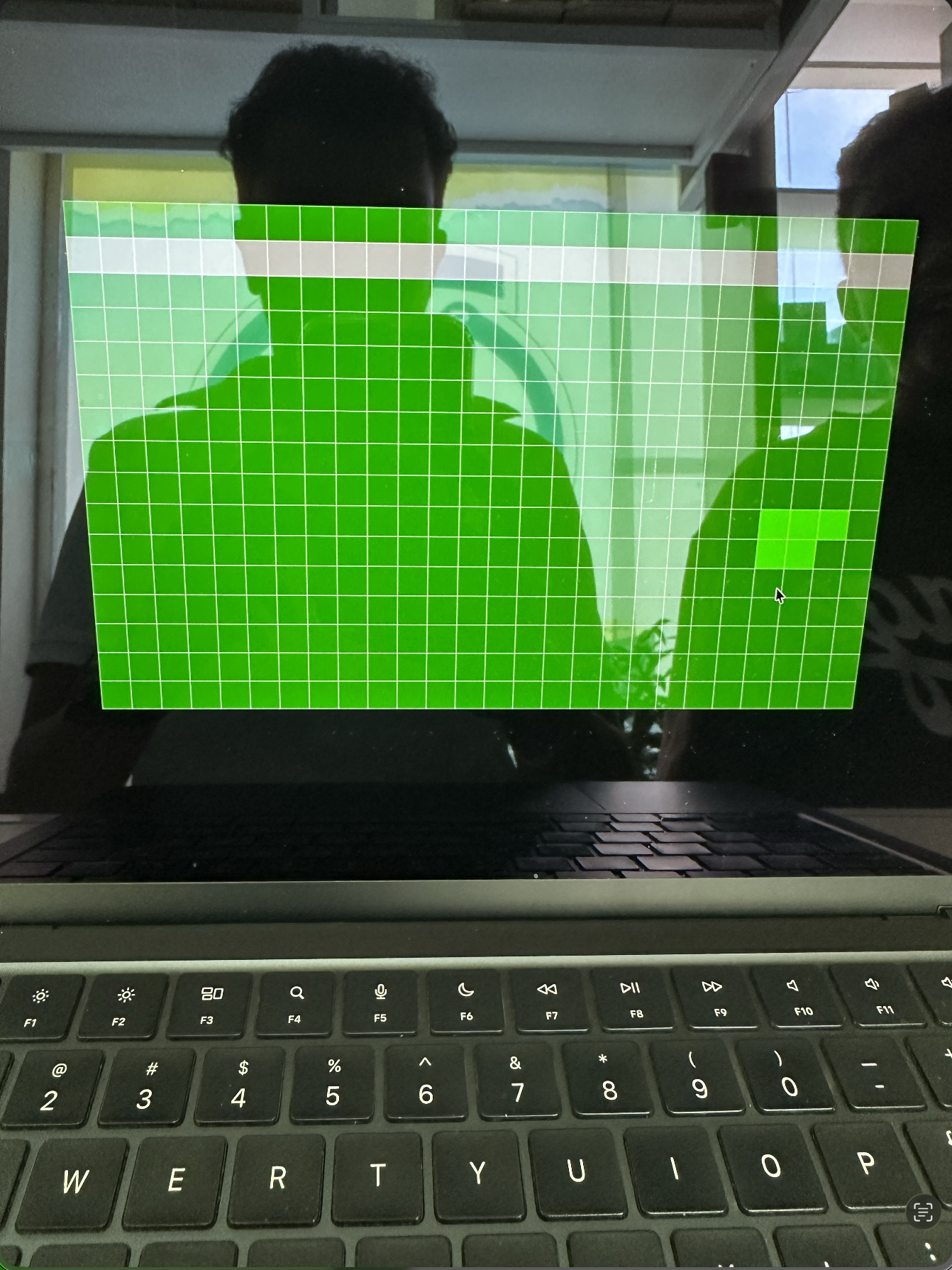I am assuming the bright green representing your fingers does not do that over that gray banded area which indicates a hardware issue at that area of the Trackpad. Now if the bright green does light up the gray area, but does not turn the gray blocks to the darker green, then that could be a diagnostic issue (I've never seen it, but I may never have used the service diagnostic for that particular model recently).