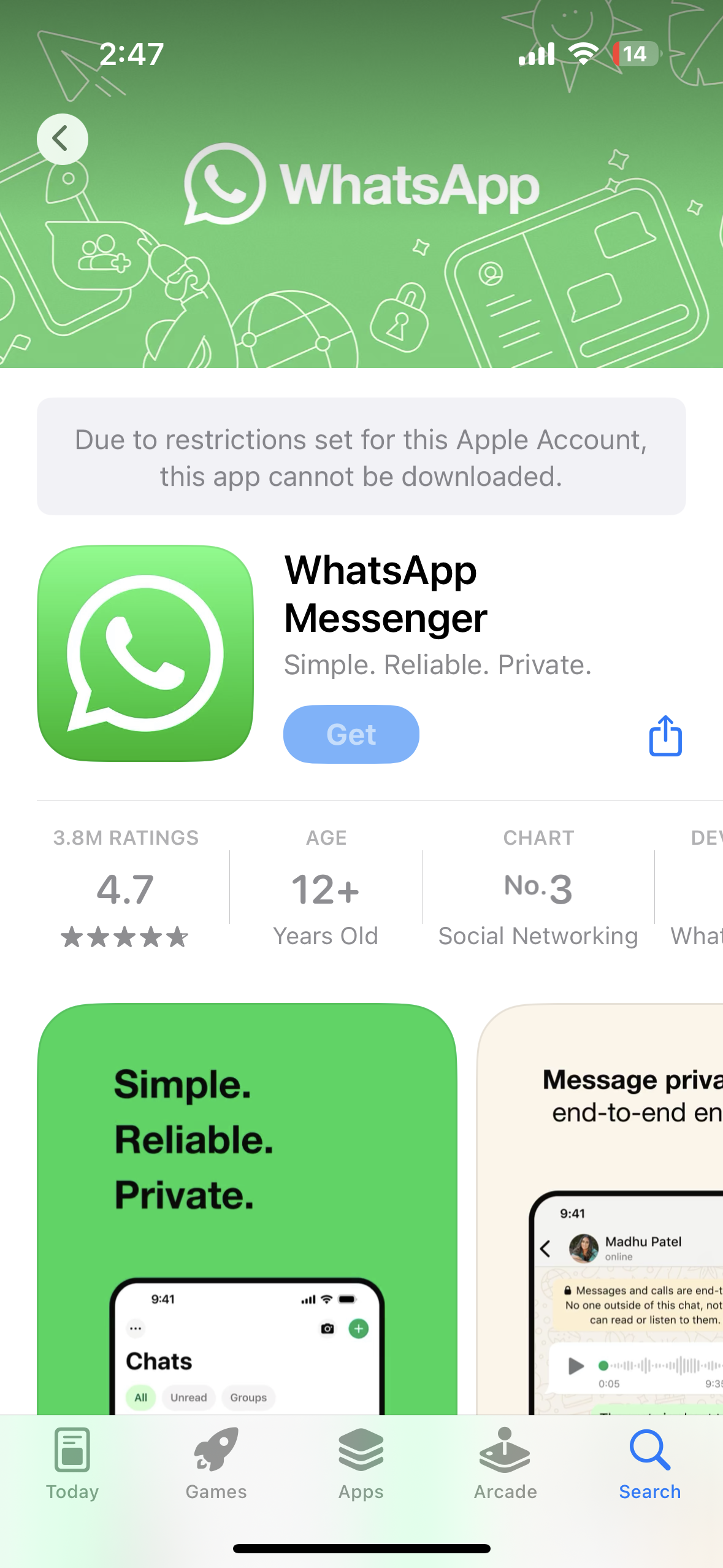 due to restrictions set for this apple account this app cannot be downloaded