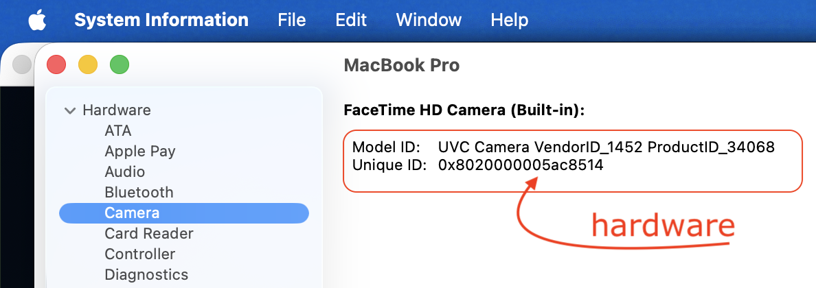>(Option key) System Information>Hardware Camera