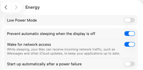 In all 32 testing scenarios the Mac mini woke up within 3 hours or less (random times) of the time I clicked the Sleep option of the drop-down Apple logo menu in the upper-left corner of the desktop screen. That is when I decided to post the question about power mode. Since that time I tested a 33rd scenario.