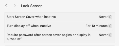 If you are using 3, 5, 10 minutes setting, would you be able to test your Mac with a 30 minute or one hour setting and post your results to this conversation?