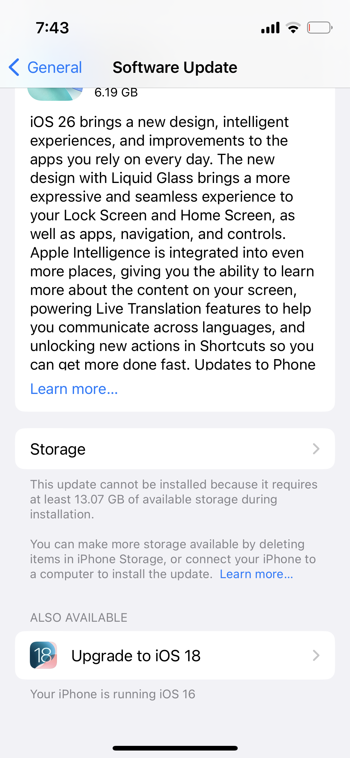 Unable to update my iPhone iOS from 16 to 18 with sufficient storage on iCloud, Apple Account, and Google Photos