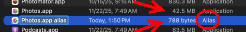 An "Alias" is a pointer to a file-- it isn't an actual file. Here is an example of Photos and an Alias of Photos:
