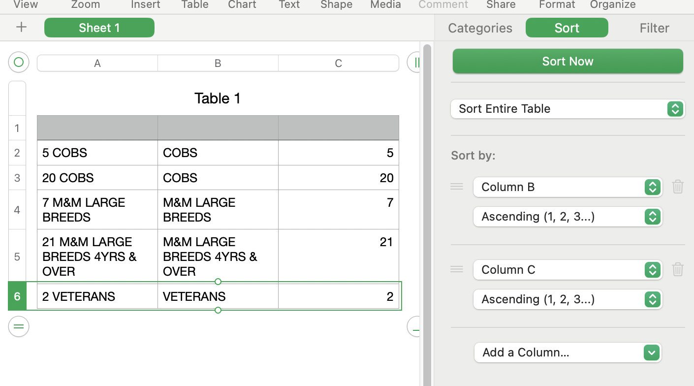 If you are using Numbers version 14.4 , an alternate idea is do the sort in another column using formulas without actually sorting the table.